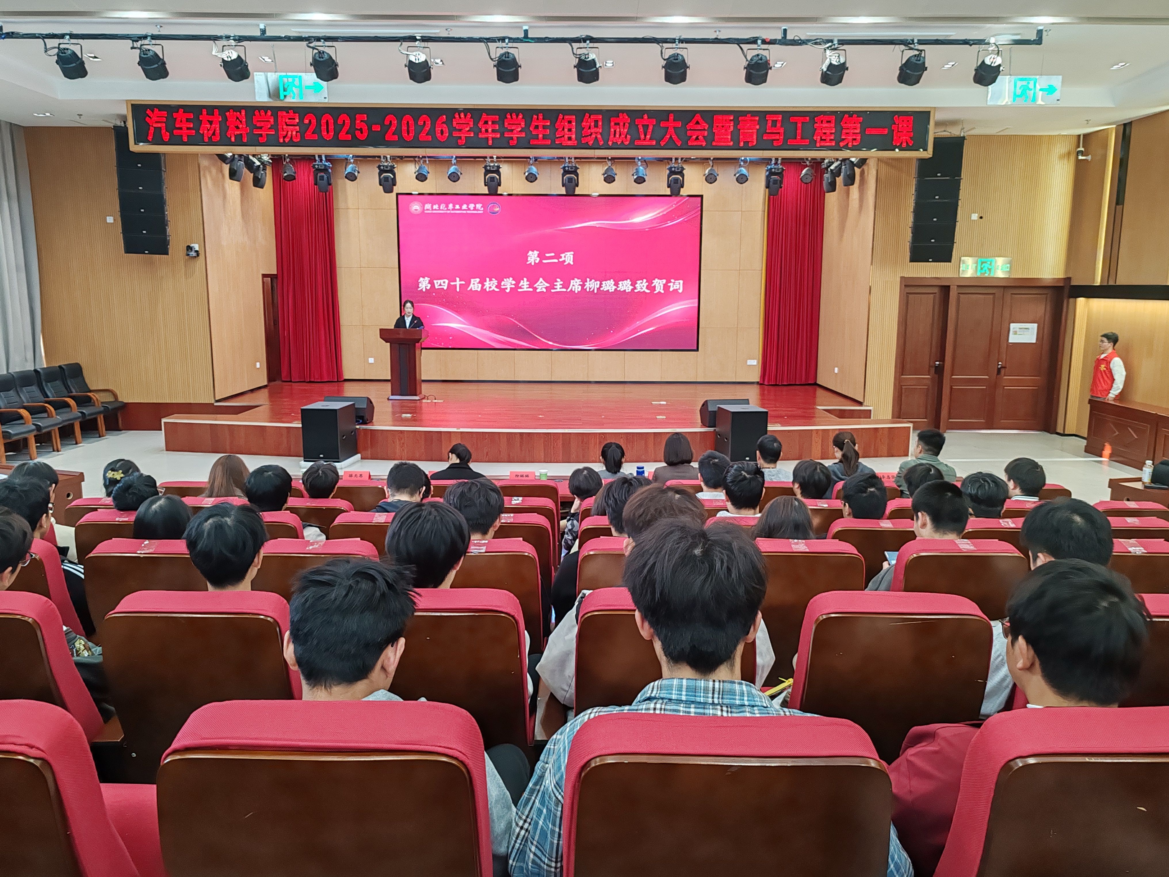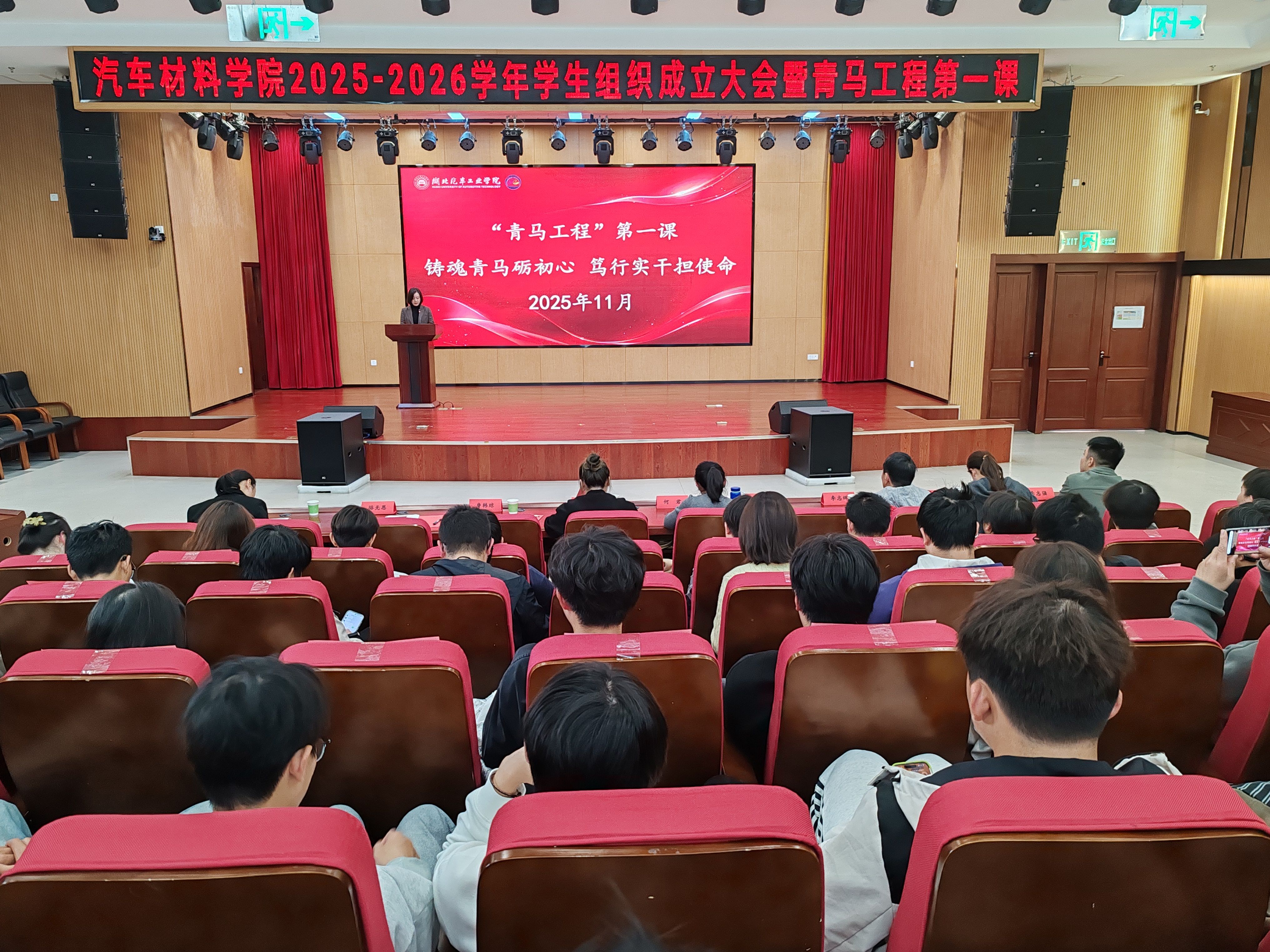 11月15日下午,汽车材料学院在产教大楼四楼报告厅隆重召开2025-2026学年学生组织成立大会暨青马工程第一课。学院党委书记杨陵郧、副书记何君,全体辅导员、班主任代表、校级学生组织代表共计360余人参加此次活动。