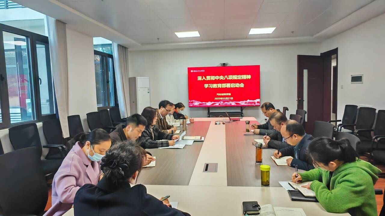 3月21日上午,汽车材料学院召开深入贯彻中央八项规定精神学习教育启动部署会。学院党委书记杨陵郧主持会议并作讲话。学院领导班子、党支部书记及科级以上干部参加会议。
