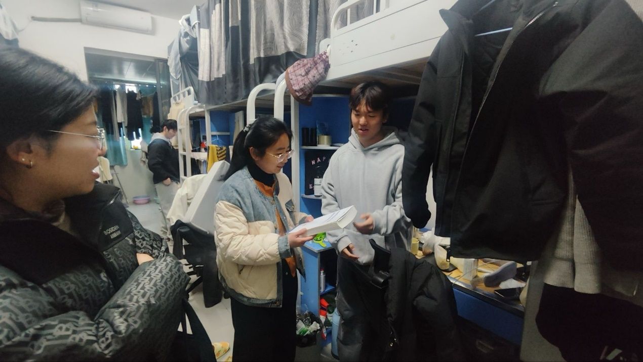 走访过程中,杨陵郧与同学们亲切交谈,详细询问大家的返校适应情况、新学期学习规划、生活需求以及宿舍氛围等,耐心倾听同学们的心声与建议。在本科生宿舍,老师们仔细查看宿舍环境卫生、安全设施及生活条件,叮嘱同学们合理规划作息、注重身心健康、遵守宿舍管理规定,在新的学期以饱满的精神状态投入到学习生活中。